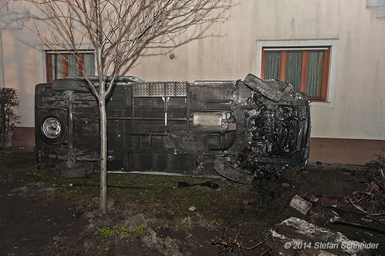Um 17:48h wurde die Freiwillige Feuerwehr Tattendorf über die Feuerwehr-Bezirksalarmzentrale (BAZ) Baden zu dem Verkehrsunfall alarmiert. Auch ein Großaufgebot von Rettungskräften war in der Zwischenzeit unterwegs zum Unfallort. Für die Bergung des Transportes lies der Feuerwehreinsatzleiter das Wechselladefahrzeug-Kran der FF Traiskirchen-Stadt nachalarmieren. Bis zum Eintreffen dieses, wurde seitens der Florianis Sicherungsarbeiten durchgeführt und die Einsatzstelle ausgeleuchtet. Mit dem Ladekran konnte dann das Unfallfahrzeug direkt aus dem Garten gehoben und auf der Fahrbahn abgelegt werden. Dort wurde es wieder auf die Räder gestellt und einem privaten Abschleppunternehmen übergeben. Am Fahrzeug aber auch am Grundstück entstand erheblicher Sachschaden. Der Feuerwehreinsatz konnte nach ca. 2,5 Std. beendet werden.