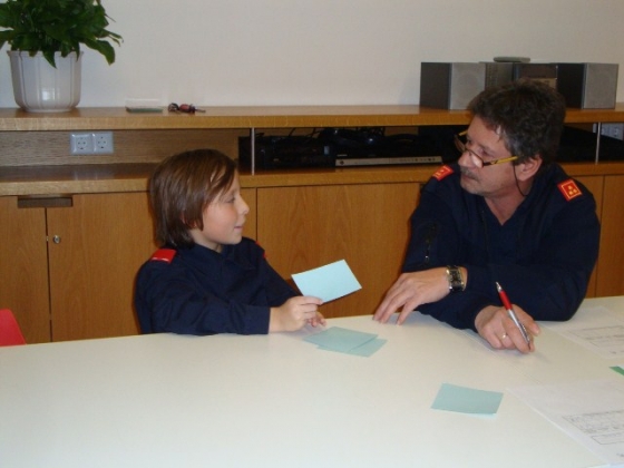 Die Jugendlichen wurden nach den Stufen „Erprobungsspiel" für 10 und 11-jährige sowie „1. Erprobung" für die 12 bis 15-jährigen eingeteilt. Die Erprobung besteht aus einem theoretischen Teil bei dem Fragen beantwortet werden müssen. Der praktische Teil beinhaltet das Zeigen und Erklären von Geräten für den Brandeinsatz, Zeigen und Erklären der Kleinlöschgeräte als auch dem Absichern einer Unfallstelle und Verhalten vor der Gruppe (Exerzieren). Der Feuerwehrkommandant überzeugte sich von den Leistungen unserer Feuerwehrjugend.