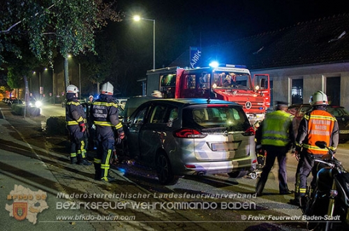 Gegen ca. 23:45 Uhr wurde die örtlich zuständige Freiwillige Feuerwehr Baden Weikersdorf über die Feuerwehr-Bezirksalarmzentrale Baden zu dem Verkehrsunfall alarmiert. Für die Bergung des Pkws, der auf ein anderes geparktes Fahrzeug geschleudert wurde, forderte der Feuerwehreinsatzleiter das Wechselladefahrzeug Kran der FF Baden-Stadt nach. In der Zwischenzeit wurde mit den Aufräumarbeiten und Bergung des Pkws des Unfalllenkers begonnen, sowie auslaufende Betriebsmittel mussten gebunden werden. Die beteiligten Fahrzeuge wurden erheblich beschädigt bzw. entstand an einigen Fahrzeugen Totalschaden.