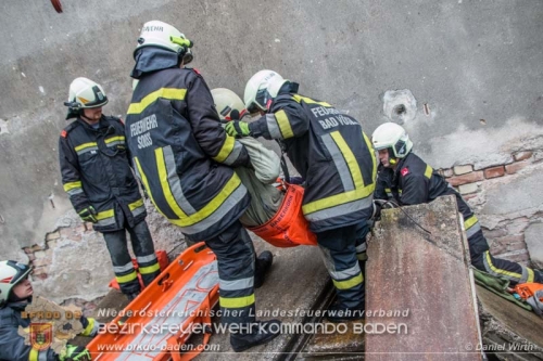 Objekt 4: Die Aufgabe der Feuerwehren Leobersdorf und Kottingbrunn bestand darin 3 Personen, welche unter einer Betondecke eingeschlossen waren zu retten. Eine weitere Person war in einen Schacht gefallen und musste ebenfalls gerettet werden. Auch mehrere tote Personen mussten mittels Südbahnwinde unter Trümmerteilen hervorgezogen werden.