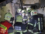 Kurz darauf trafen die ersten Tanklöschfahrzeuge am Einsatzort ein. Einsatzleiter Feuerwehrkommandant Michael Hebesberger (FF Enzesfeld) erkundete die Lage. Glücklicherweise befand sich keine weitere Person im Gebäude. Die Flammen hatten bereits aus dem hofseitigen Vorhaus auf das Dach übergegriffen. Umgehend begannen Atemschutztrupps mit dem Außenangriff, um eine weitere Ausbreitung zu verhindern. Mit dem Eintreffen weiterer Löschmannschaften konnte der Brand rasch eingedämmt und anschließend auch im Innenangriff bekämpft werden.